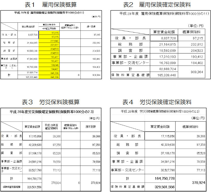 ⑥.雇用保険料、労災保険料の概算保険料算出用の資料が作成できます。