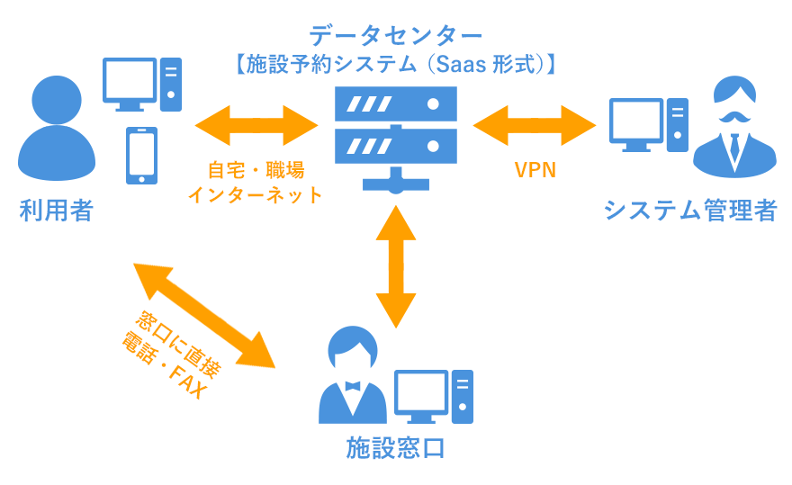 ホームページからの予約・施設来場しての予約・職員様の直接予約において利用シーンが違うため、3つの予約入力を提供します。